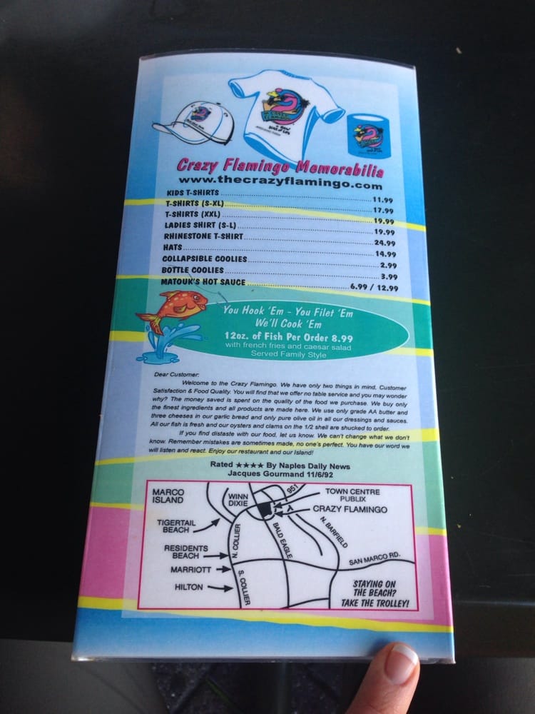 The Crazy Flamingo in Marco Island, FL, offers a unique dining experience with a laid-back atmosphere. Known for its delicious chicken wings, American cuisine, and seafood dishes, this restaurant provides vegan options and limited vegetarian choices. The menu caters to various dietary needs and preferences, ensuring there is something for everyone.