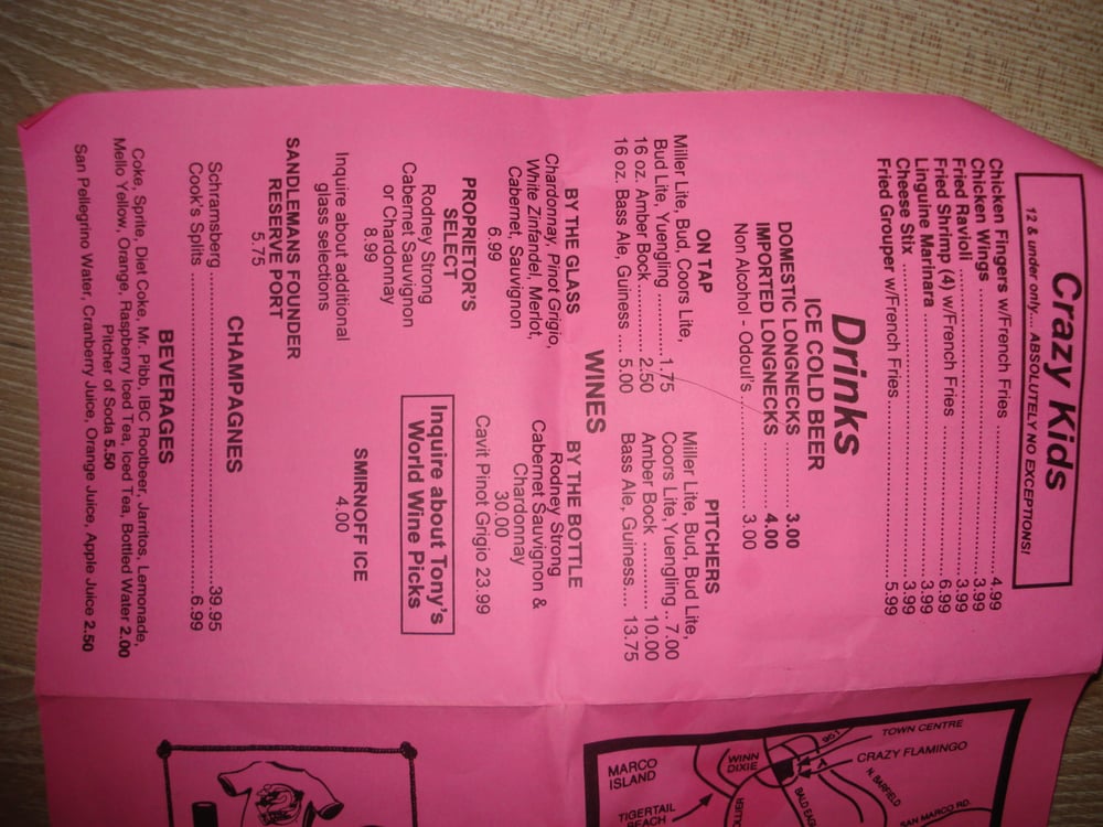 The Crazy Flamingo Menu